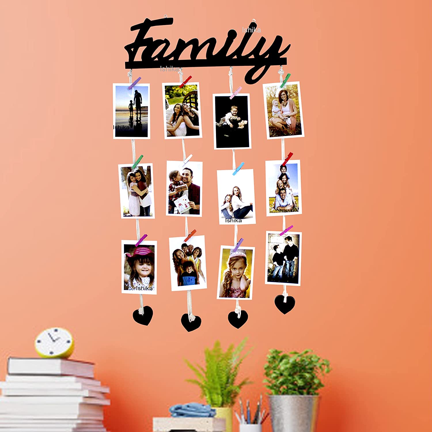 • Package Contain: 1 X Collage Picture Frame, 16 X Wooden Clips, 1 X Mounting Tape